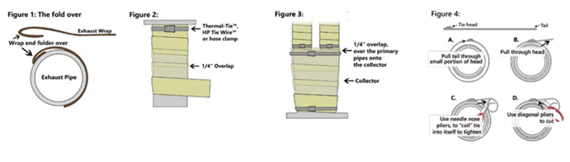 •การทับซ้อน 1/4” - อะไรก็ตามที่มากกว่า 1/4” อาจมีการป้องกันท่อ อาจจำเป็นเมื่อพันรอบโค้งให้เกิน 1/4” และนั่นก็ดีเพียงอย่าลืมยึดติดกับ 1/4” ซ้อนทับสำหรับส่วนอื่น ๆ ของระบบไอเสีย